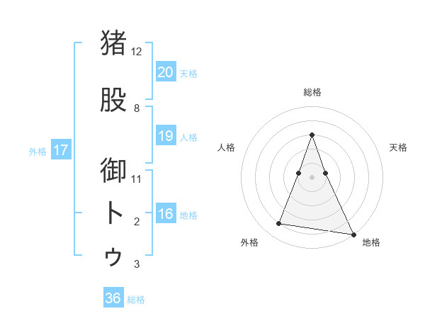猪股 御トゥさんの外格は17画の4点