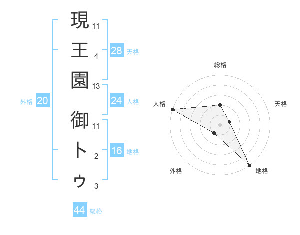 現王園 御トゥさんを姓名の画数から五運を鑑定