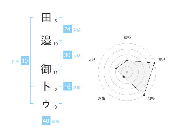 田邉 御トゥさんの外格は10画の1点