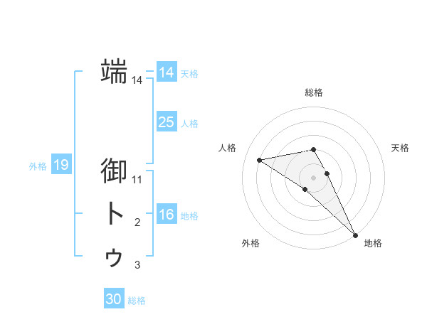 端 御トゥさんの天格は14画の1点!
