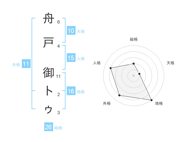 舟戸 御トゥさんを姓名の画数から五運を鑑定