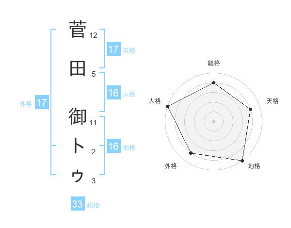 菅田 御トゥさんを姓名の画数から五運を鑑定