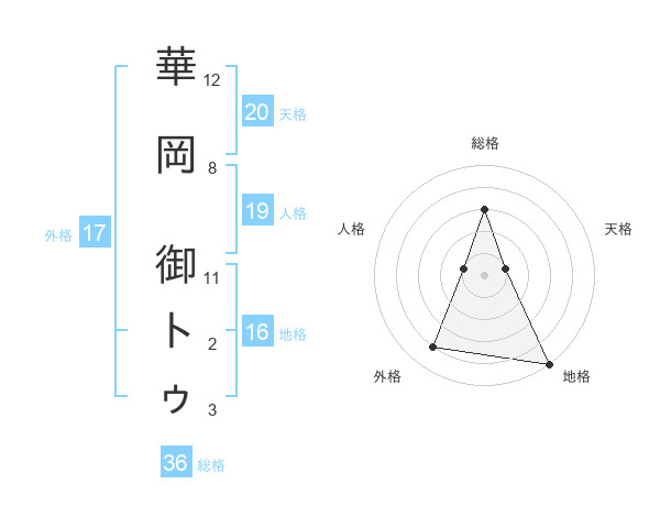 華岡 御トゥさんの天格は20画の1点!