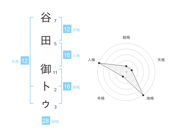 谷田 御トゥさんの地格は16画の5点!