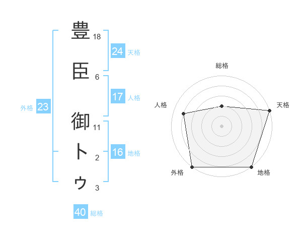 豊臣 御トゥさんの天格は24画の5点!