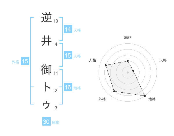逆井 御トゥさんの地格は16画の5点!