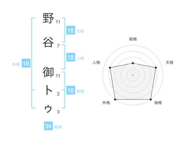 野谷 御トゥさんを姓名の画数から五運を鑑定