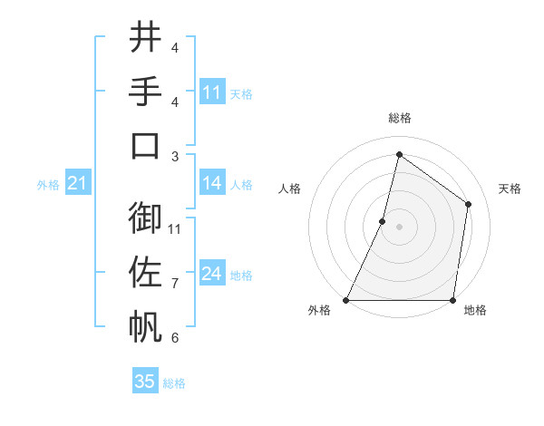 井手口 御佐帆さんを姓名の画数から五運を鑑定