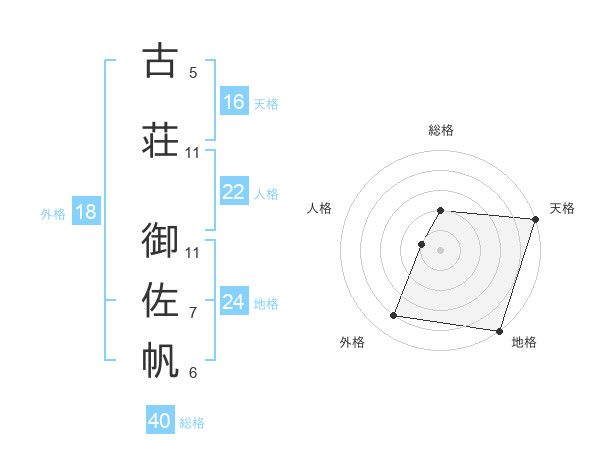 古荘 御佐帆さんを姓名の画数から五運を鑑定