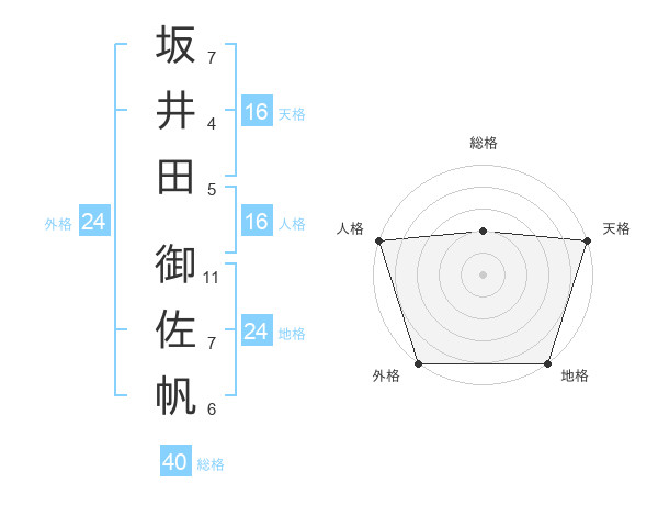 坂井田 御佐帆さんを姓名の画数から五運を鑑定