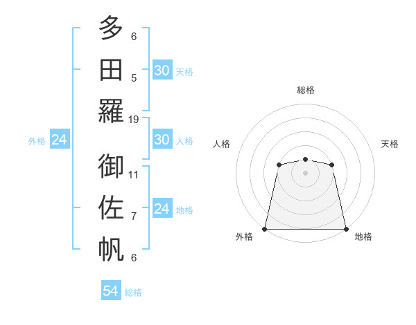 多田羅 御佐帆さんを姓名の画数から五運を鑑定