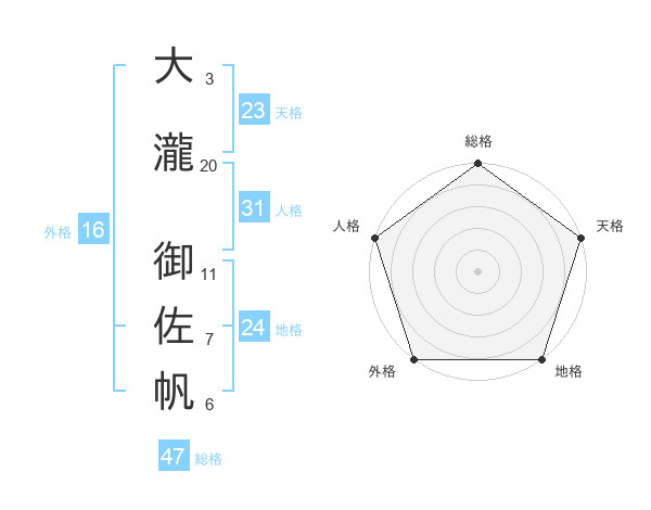 大瀧 御佐帆さんの総格は47画の5点!
