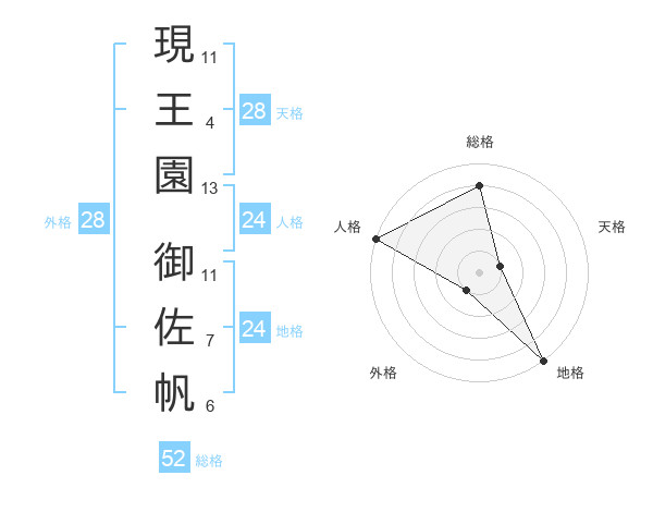 現王園 御佐帆さんを姓名の画数から五運を鑑定