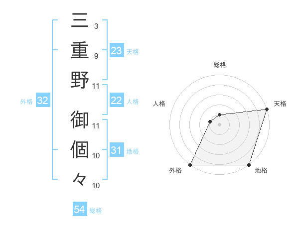 三重野 御個々さんの外格は32画の5点!
