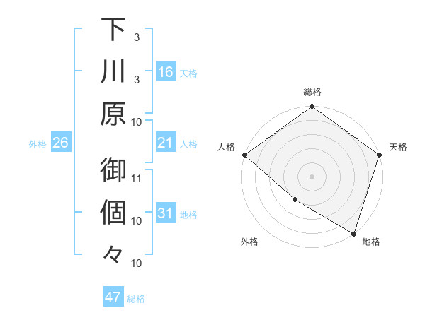 下川原 御個々さんを姓名の画数から五運を鑑定