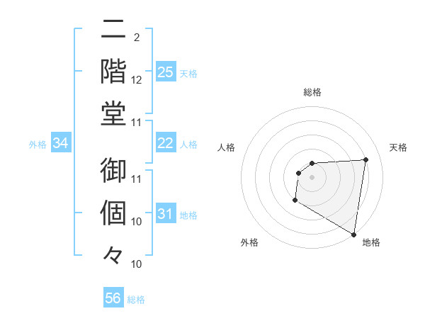 二階堂 御個々さんを姓名の画数から五運を鑑定