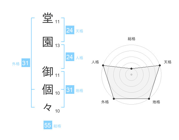 堂園 御個々さんを姓名の画数から五運を鑑定