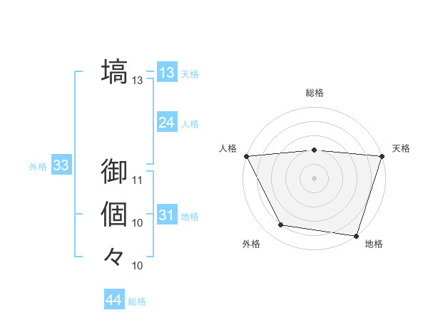 塙 御個々さんの外格は33画の4点!