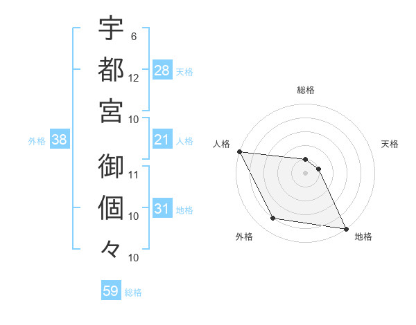宇都宮 御個々さんの人格は21画の5点!