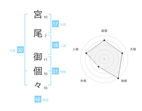 宮尾 御個々さんを姓名の画数から五運を鑑定
