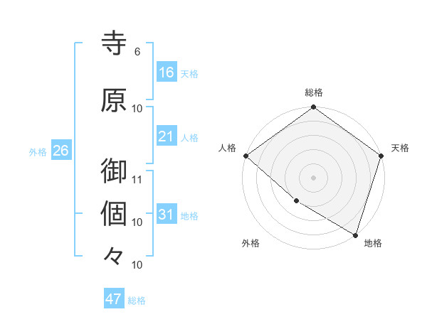 寺原 御個々さんを姓名の画数から五運を鑑定
