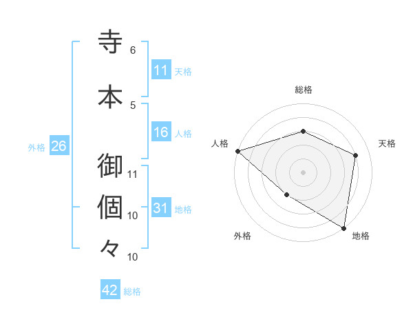 寺本 御個々さんを姓名の画数から五運を鑑定