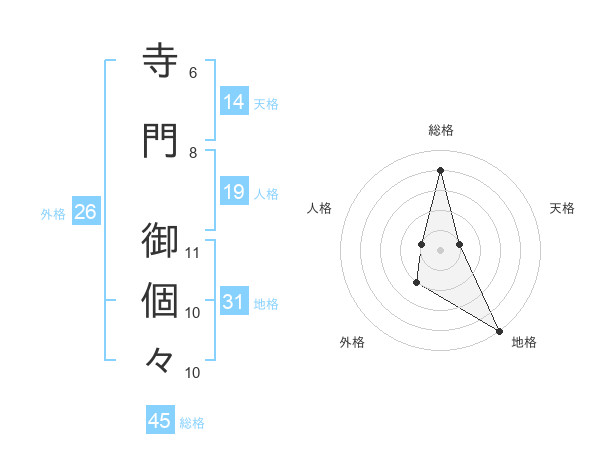 寺門 御個々さんの総格は45画の4点!