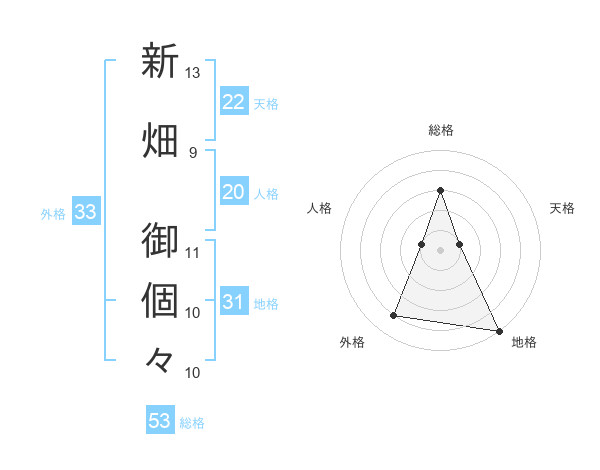 新畑 御個々さんを姓名の画数から五運を鑑定