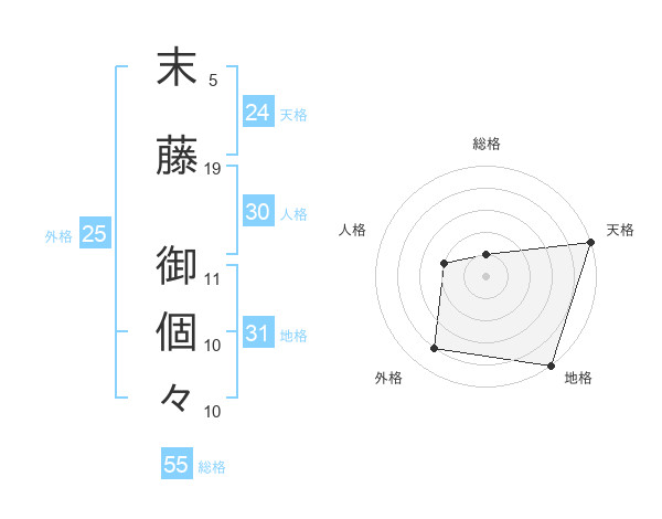 末藤 御個々さんを姓名の画数から五運を鑑定