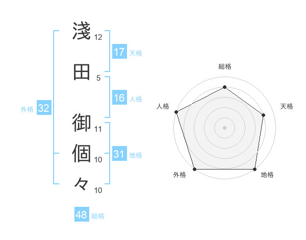 淺田 御個々さんを姓名の画数から五運を鑑定