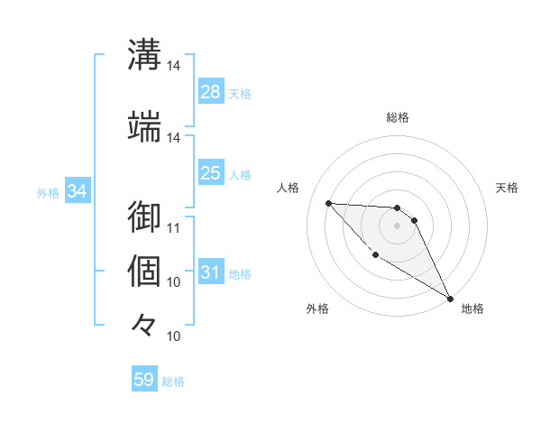 溝端 御個々さんの総格は59画の1点!