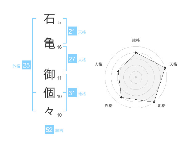 石亀 御個々さんを姓名の画数から五運を鑑定