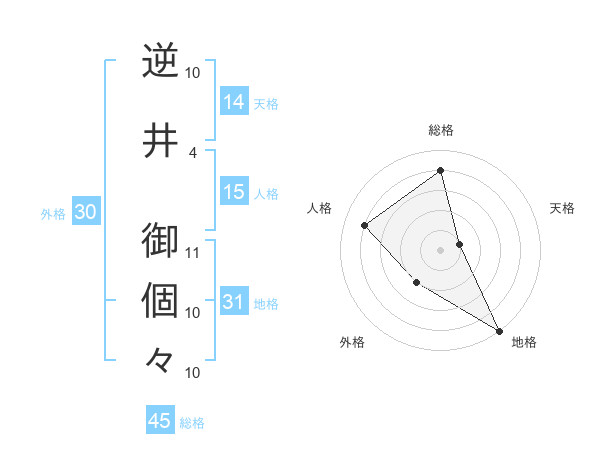 逆井 御個々さんを姓名の画数から五運を鑑定