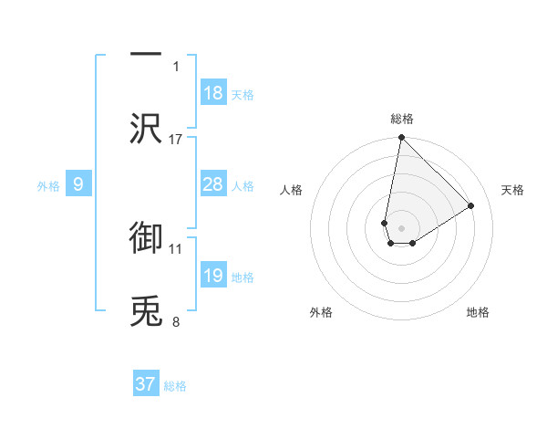 一沢 御兎さんを姓名の画数から五運を鑑定