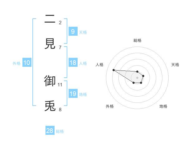 二見 御兎さんの総格は28画の1点!