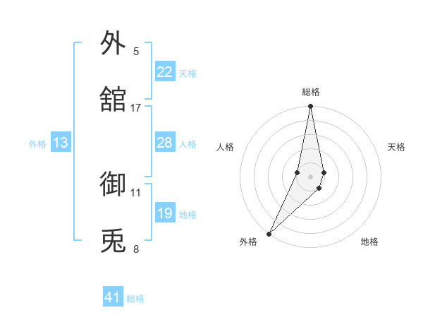 外舘 御兎さんを姓名の画数から五運を鑑定