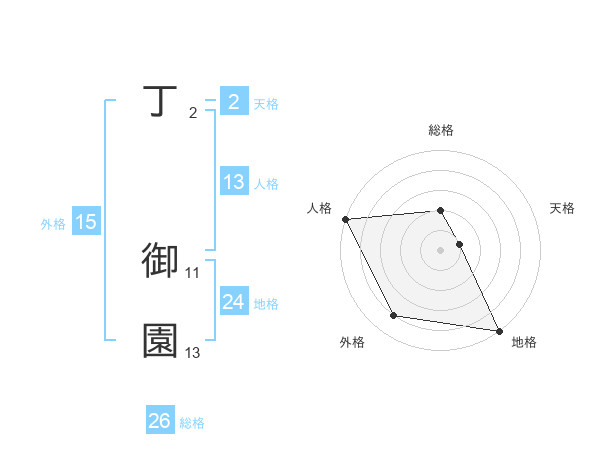 家系が持つ宿命的な運勢を表します。祖先から受け継いだ苗字ですので自分の力が及びません。家柄を象徴します。
