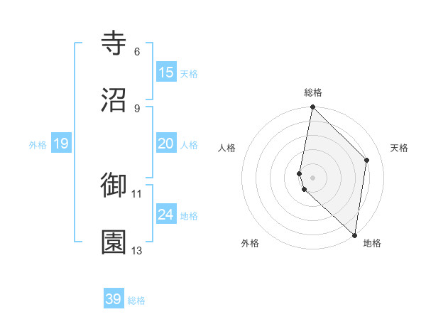 寺沼 御園さんの総格は39画の5点!