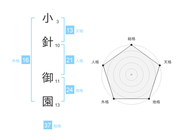 小針 御園さんの天格は13画の5点!