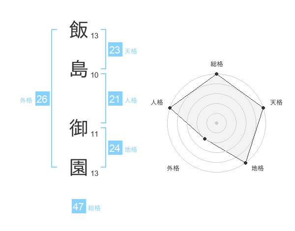 飯島 御園さんの総格は47画の5点!