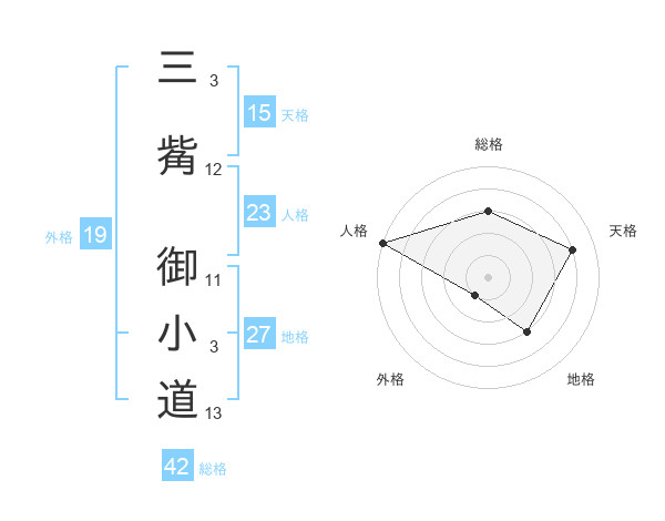 三觜 御小道さんを姓名の画数から五運を鑑定