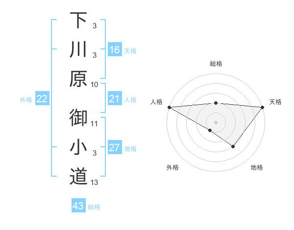 下川原 御小道さんを姓名の画数から五運を鑑定