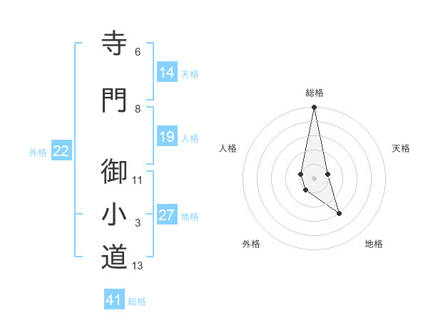 寺門 御小道さんを姓名の画数から五運を鑑定