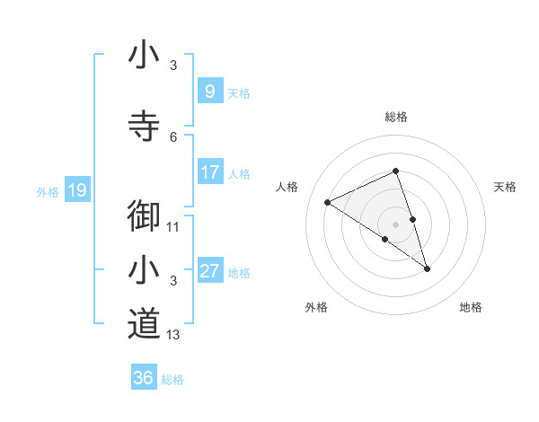 小寺 御小道さんの総格は36画の3点!