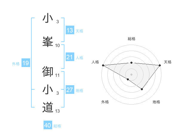 小峯 御小道さんを姓名の画数から五運を鑑定