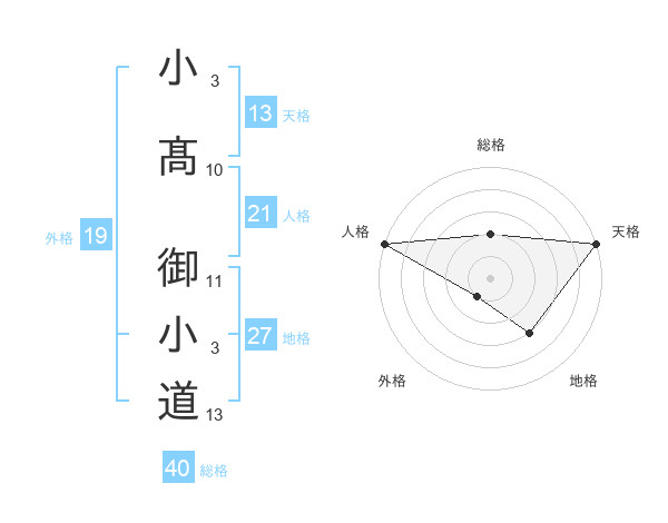 小髙 御小道さんを姓名の画数から五運を鑑定