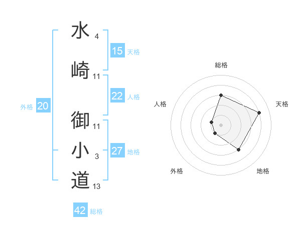 水崎 御小道さんを姓名の画数から五運を鑑定