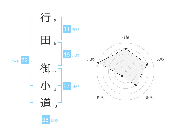 行田 御小道さんの総格は38画の4点!