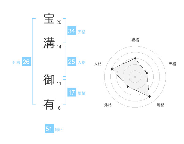 宝溝 御有さんを姓名の画数から五運を鑑定