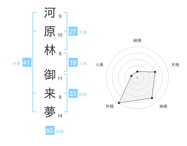 河原林 御来夢さんを姓名の画数から五運を鑑定